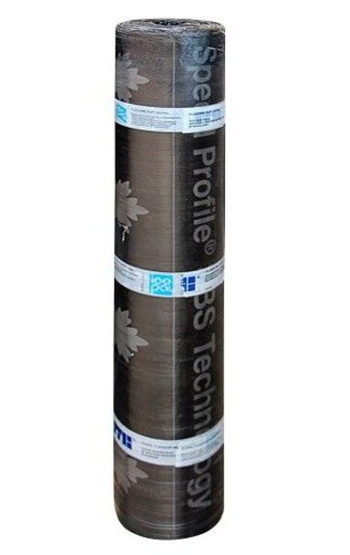 Мембрана покрівельна, зварна або для механічного кріплення, на основі зі склотканини, з покриттям асфальтовою масою з двох сторін: СБС модифікований асфальт з мінеральним наповнювачем. Верхня сторона покрита дрібнозернистою мінеральною посипкою, нижня сторона профільована і захищена поліетиленовою фольгою. Руберойд виготовляється за технологією ‘FAST PROFILE’.